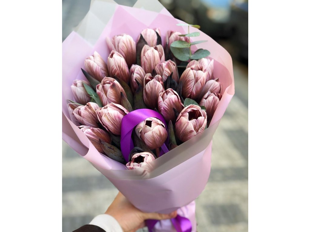 Kytice se skládá z čerstvých Tulipánů odrudy Brownie