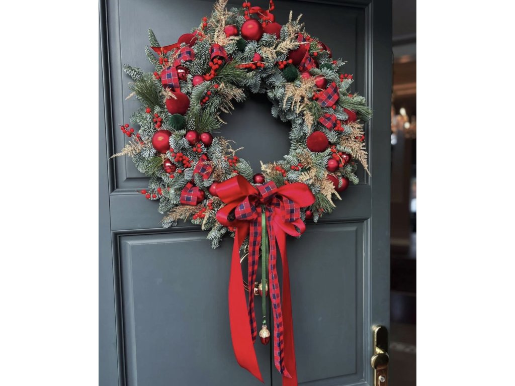 Na výše uvedené fotce věnec na dveře. Možnost přidání svíček bez příplatků