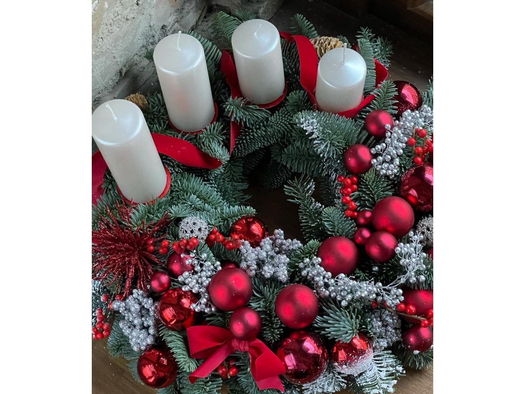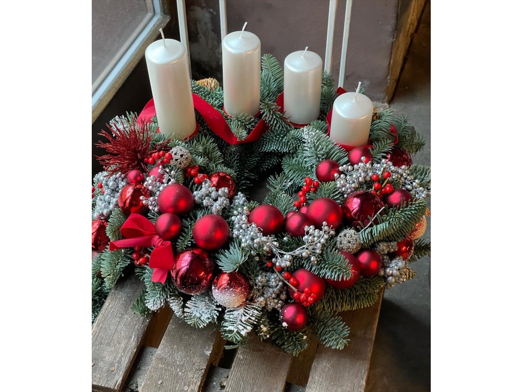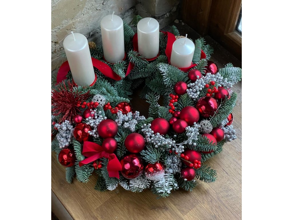 Na výše uvedené fotce věnec na dveře. Možnost přidání svíček bez příplatků